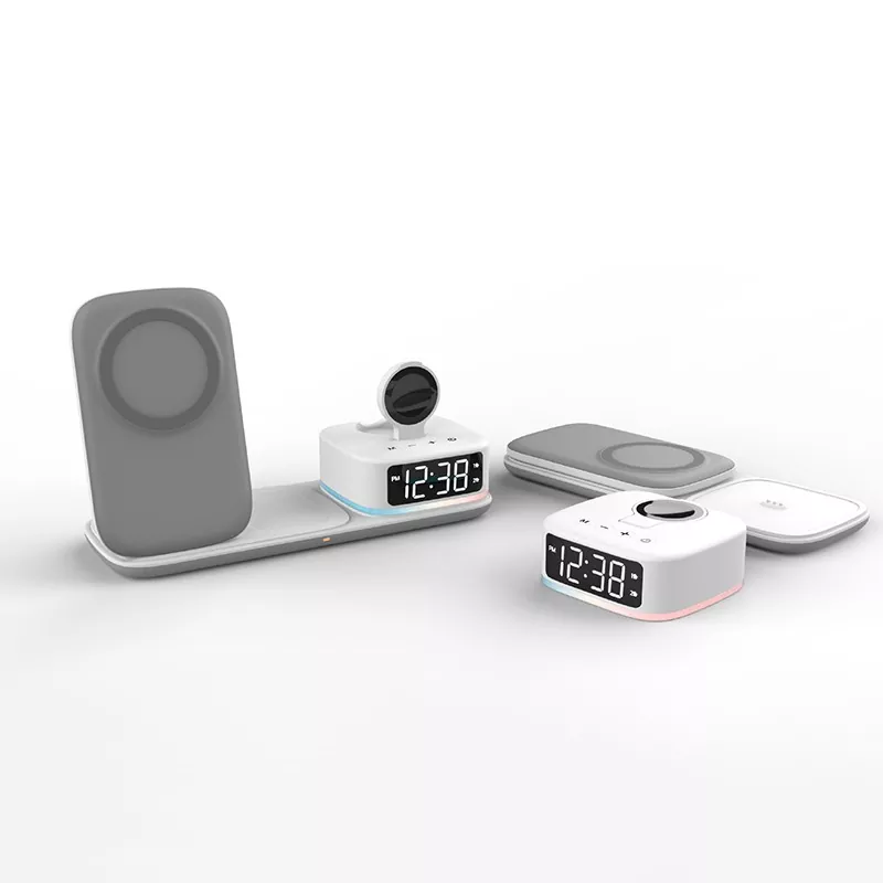 Остання розробка SYNST, відомого китайського виробника та постачальника, це бездротові зарядні пристрої для мобільних телефонів. Наші бездротові зарядні пристрої підтримують швидку зарядку до 15 Вт і здатні задовольнити потреби переважної більшості смартфонів. Незалежно від того, чи це мобільні телефони Apple, Samsung чи інших марок, просто підключіть пристрій до зарядного пристрою, і ви зможете насолоджуватися зручністю швидкої зарядки. Крім того, зарядний пристрій також підтримує функцію бездротової зарядки 5 Вт, яка спеціально розроблена для невеликих пристроїв, таких як навушники та годинники. Незалежно від того, чи це гарнітура Bluetooth чи розумний годинник, просто одягніть і швидко зарядіть, щоб ваш пристрій завжди був увімкненим. На додаток до потужної функції бездротового заряджання, ці бездротові зарядні пристрої для мобільних телефонів також оснащені функцією розумного годинника, щоб допомогти вам краще зрозуміти, як довго ваш телефон заряджається. Конструкція подвійного будильника дозволяє встановлювати два різні будильники для зручного керування часом у повсякденному житті. Наприклад, ви можете встановити один будильник, щоб прокидатися вранці, а інший – нагадувати вам про зустріч або іншу важливу подію. Щоб задовольнити потреби різних користувачів, можна регулювати гучність будильника. Ви можете підібрати потрібний обсяг відповідно до ваших особистих звичок.